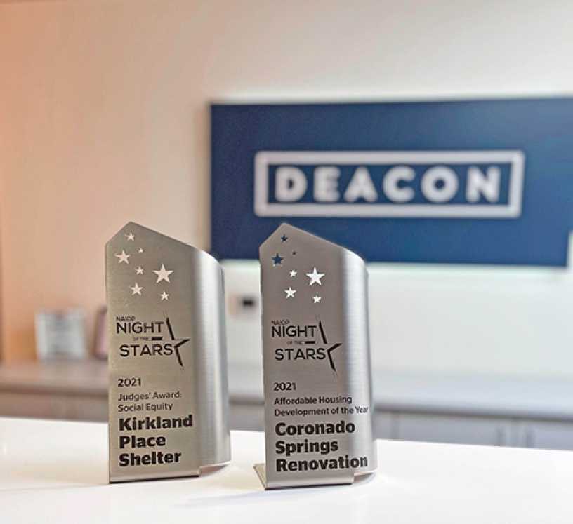The first award Deacon received was the Affordable Housing Development of the Year Award for our Coronado Springs Renovation project in Seattle, WA. The Coronado Springs development was an affordable housing renovation comprised of 19 single-story lived-in apartment homes. Owned by BRIDGE Housing, the property featured a mix of cottage buildings, totaling 150 units. As the units were occupied, each structure had a 30-day turnaround for the complete overhaul to allow minimal displacement to the residents. The kitchens and bathrooms were all redone and updated. Finishing work included new floorings and had walls and ceilings repainted. This project was underway when the COVID-19 pandemic hit, and even with complications, our team completed the project in 15 months.